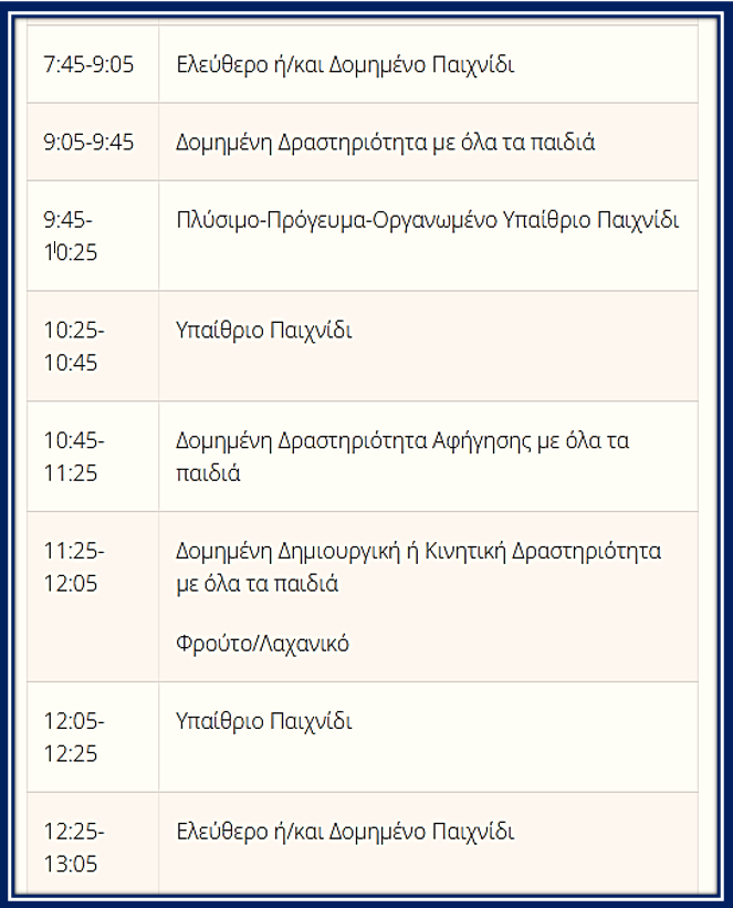 ΩΡΟΛΟΓΙΟ ΠΡΟΓΡΑΜΜΑ ΝΗΠΙΑΓΩΓΕΙΟΥ